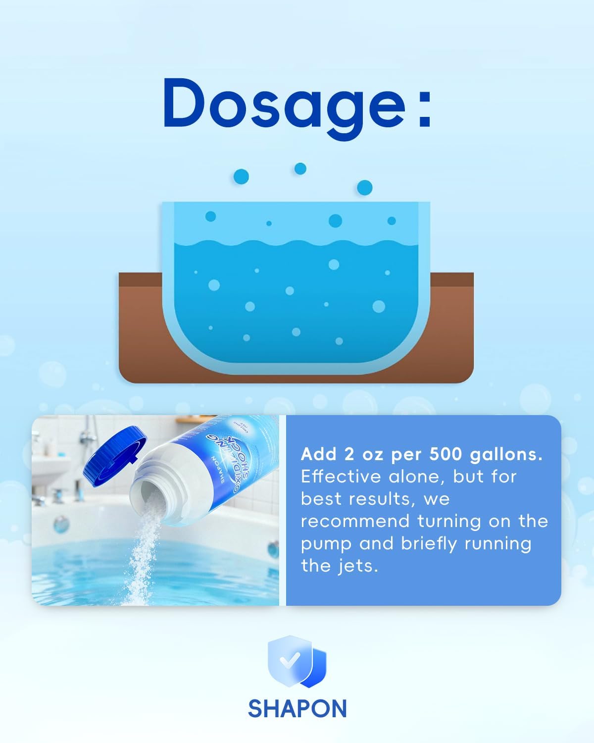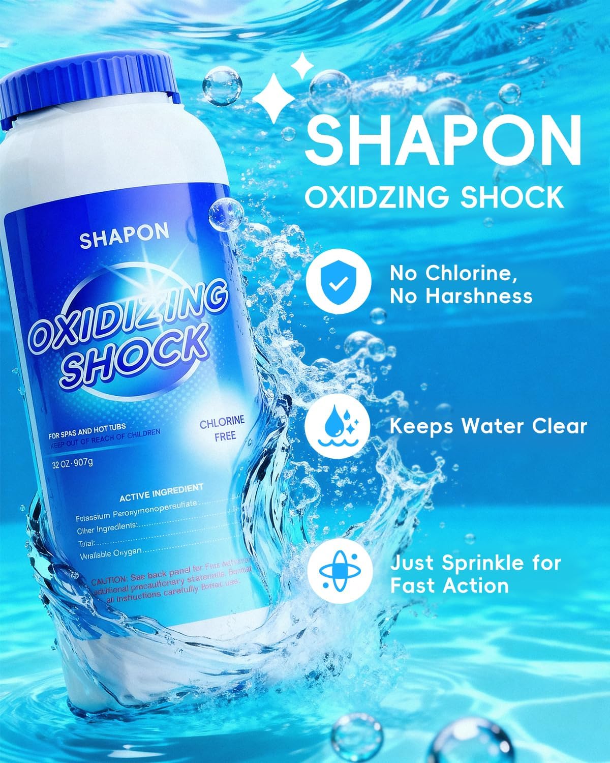 - Fast Acting: Skip the mixing – just add SHAPON shock straight into your spa or hot tub. Within about 15 minutes, the water is ready for a comfortable soak, saving you precious time