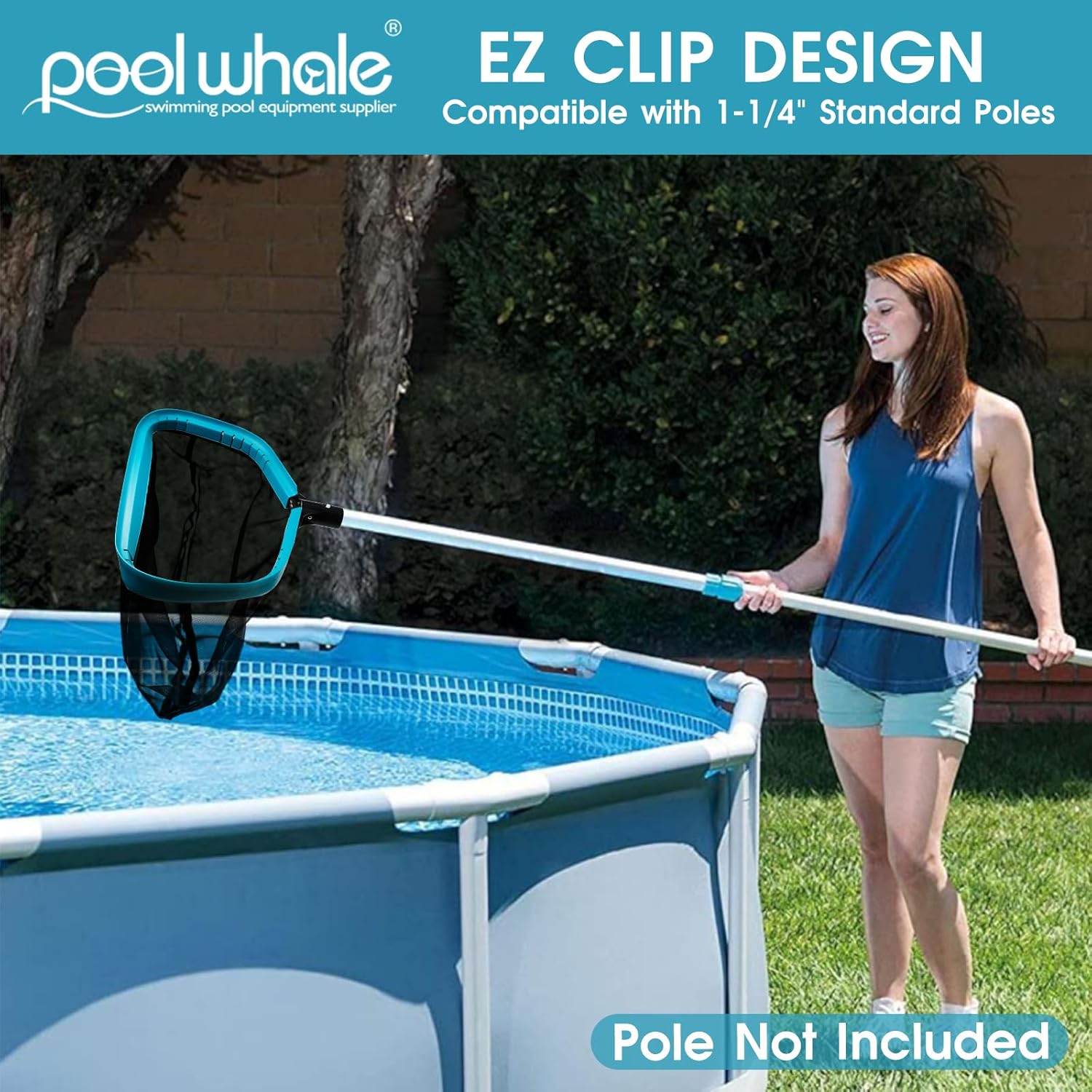 • Easy to Install: EZ clip handle buttons that prevent your fingers from getting pinched or jammed while attaching or detaching a telescopic pole. Our swimming pool skimmer fits with 1-1/4″ diameter standard telescopic swimming pool pole (pole is not included) to extend your reach area.